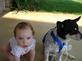 Ellison will pull and grab at Kiwi's fat rolls and ears. Kiwi does nothing just sits there happy to be loved. Kiwi will try to lick Ellison for loving on her. Ellison loves to watch the dog. If the dog leaves her sight she whips around till Kiwi is in view. Hopefully and so far this situation will work out for everyone. As for Kiwi I think Unindependence Day may be her best day ever. Enjoy the pictures. I think Kiwi looks great shaved. It makes her look skinnier, healthier, and younger. It reminds me of when she was a puppy. So if it is possible I will try to keep her shaved. Except maybe the winter time.